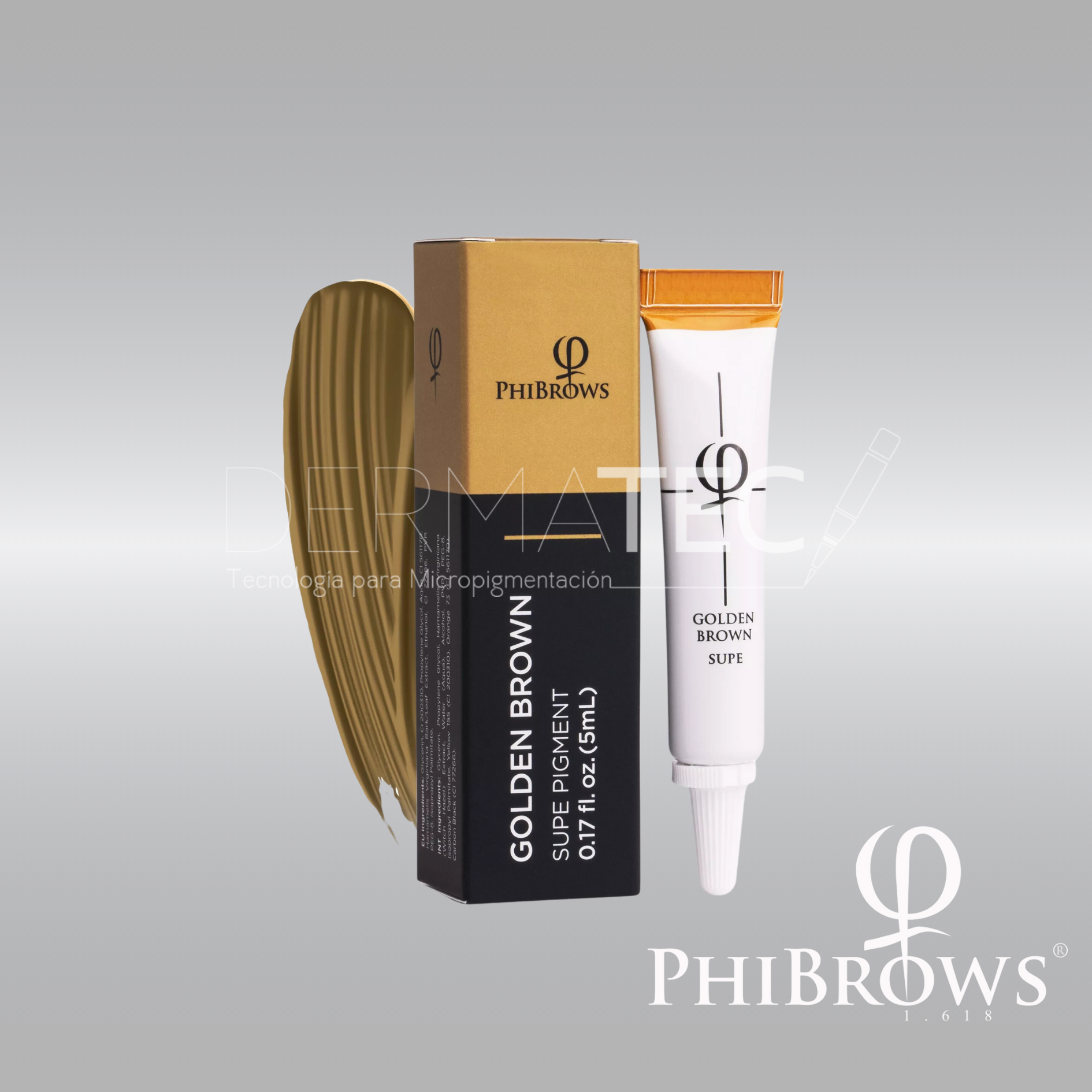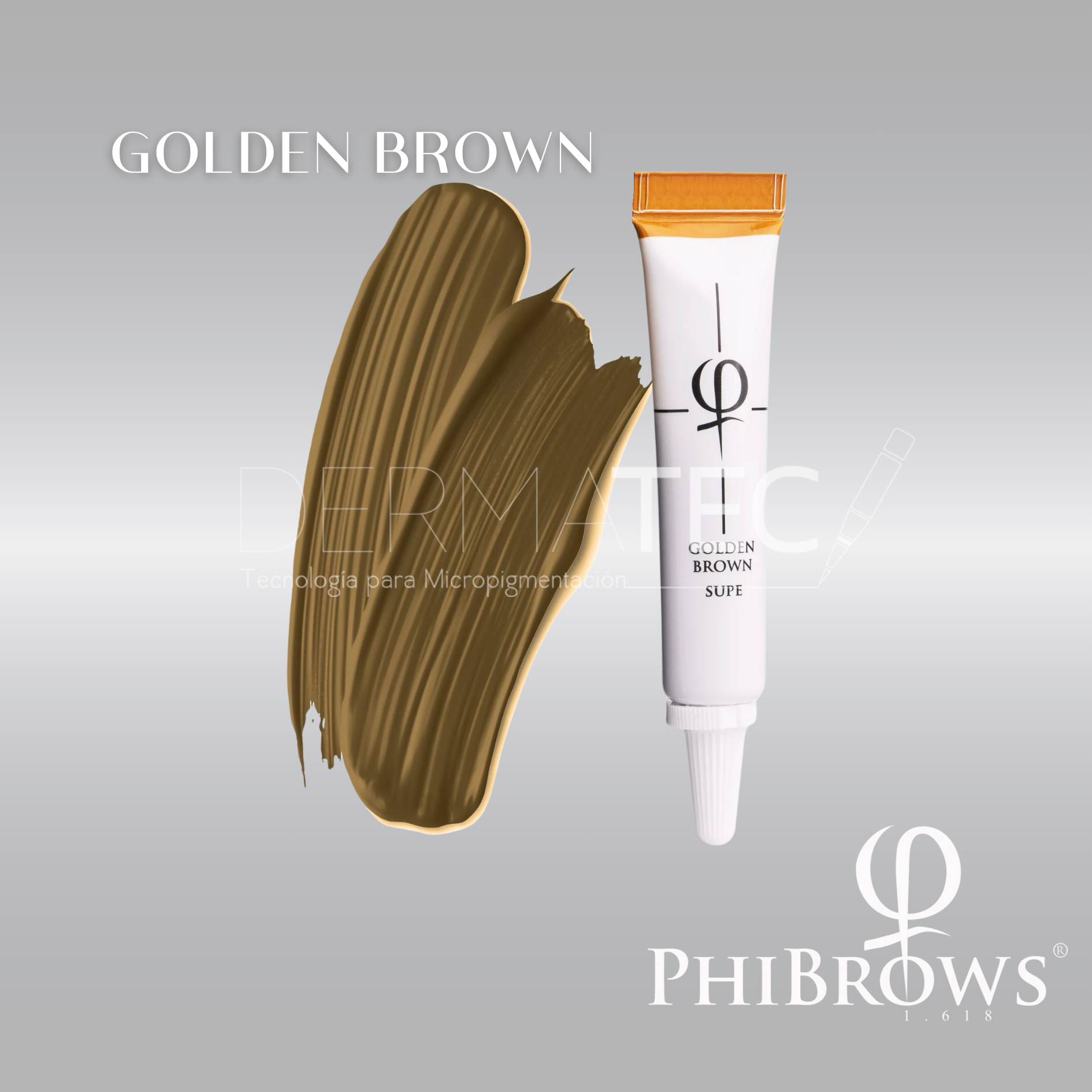 El Golden Brown es un marrón dorado y es el más claro de la paleta de pigmentos PhiBrows. Se utiliza con cabellos y cejas naturales extremadamente claros. Se utiliza principalmente en países escandinavos, Alemania y Rusia. También se puede utilizar con canas, puro o en combinación con una o dos gotas de pigmento amarillo.